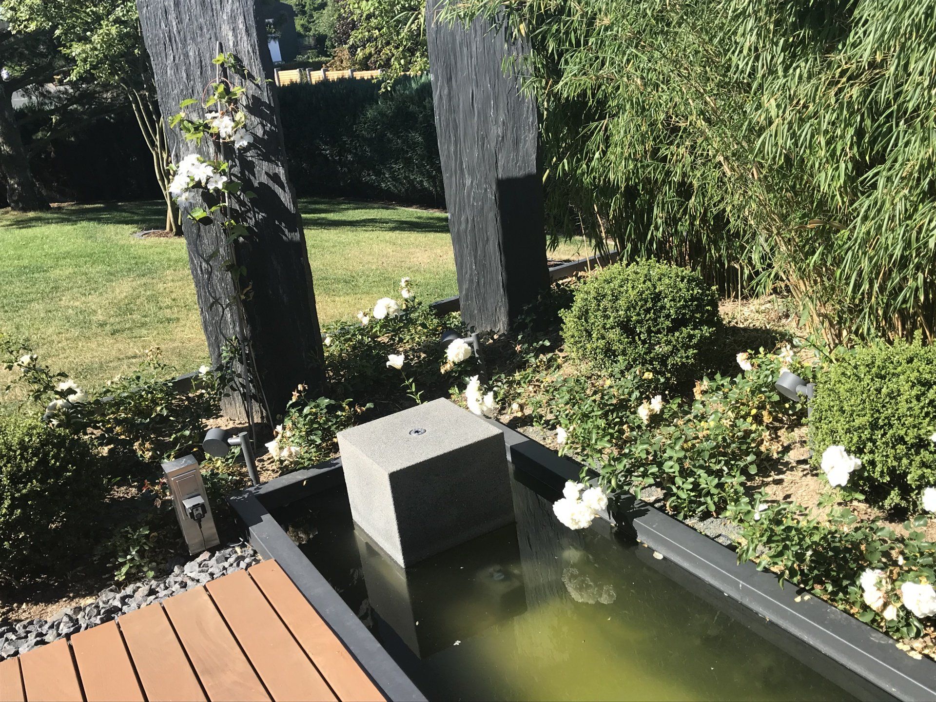 Wasser im Garten in Form von Wasserbecken oder Quellsteinen bereichern den Garten.